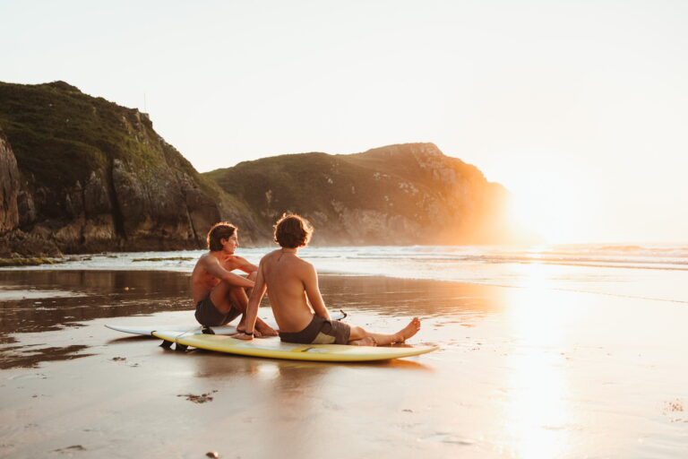 El Rayo Verde, een spot die we graag benoemen. Deze plek in Oyambre bestaat uit een fantastische secret garden, met 2 grote foodtrucks waar je terecht kunt voor een ijskoude San Miquel of Aperol Spritz en de meest unieke sunset van Spanje. Ook treden de verschillende surfbandjes van Enter The Wave hier op, waardoor je een extra heerlijke sfeer krijgt (hiervoor heb je wel een Enter The Wave bandje nodig).