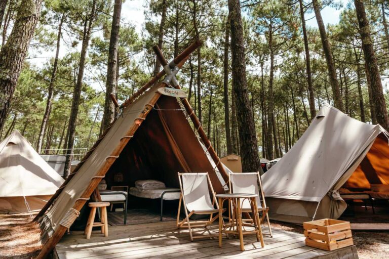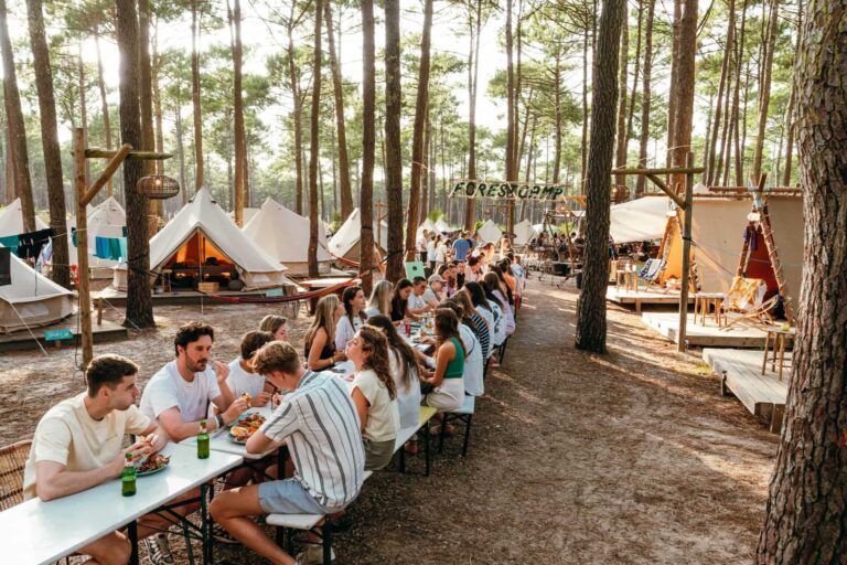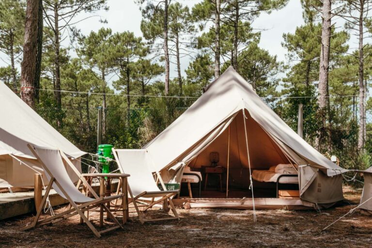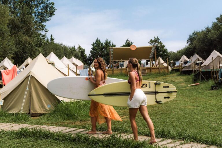 Op het Enter The Wave Forestcamp overnacht je in luxe tenten en word je wakker met het geluid van de oceaan. Het surfcamp heeft een intieme setting tussen de dichte naaldbomen van Biscarrosse in Frankrijk.
